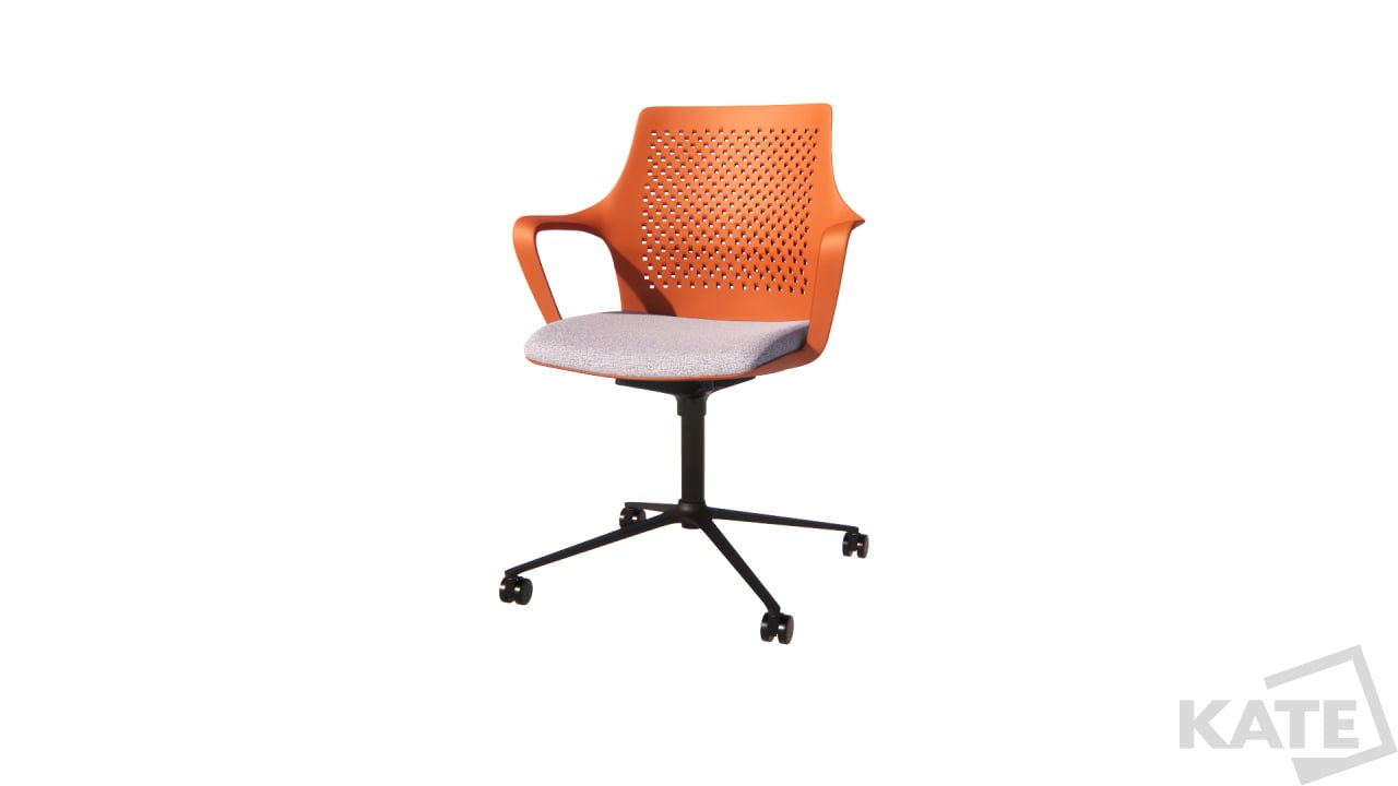 Kate sapulču krēsls Gemina ar oranža plastikāta atzveltni un melnu 4-staru riteņu bāzi