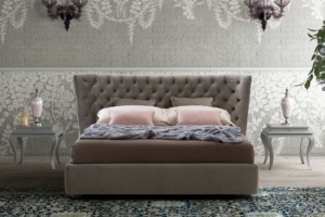 Контуры Caravaggio сделаны основываясь на деталях, приближенных классическому стилю. Стремящемуся вверх изголовью кровати придают индивидуальности элегантные изгибы по краям, которые добавляют динамичности шикарному узору capitonné с пуговицами.