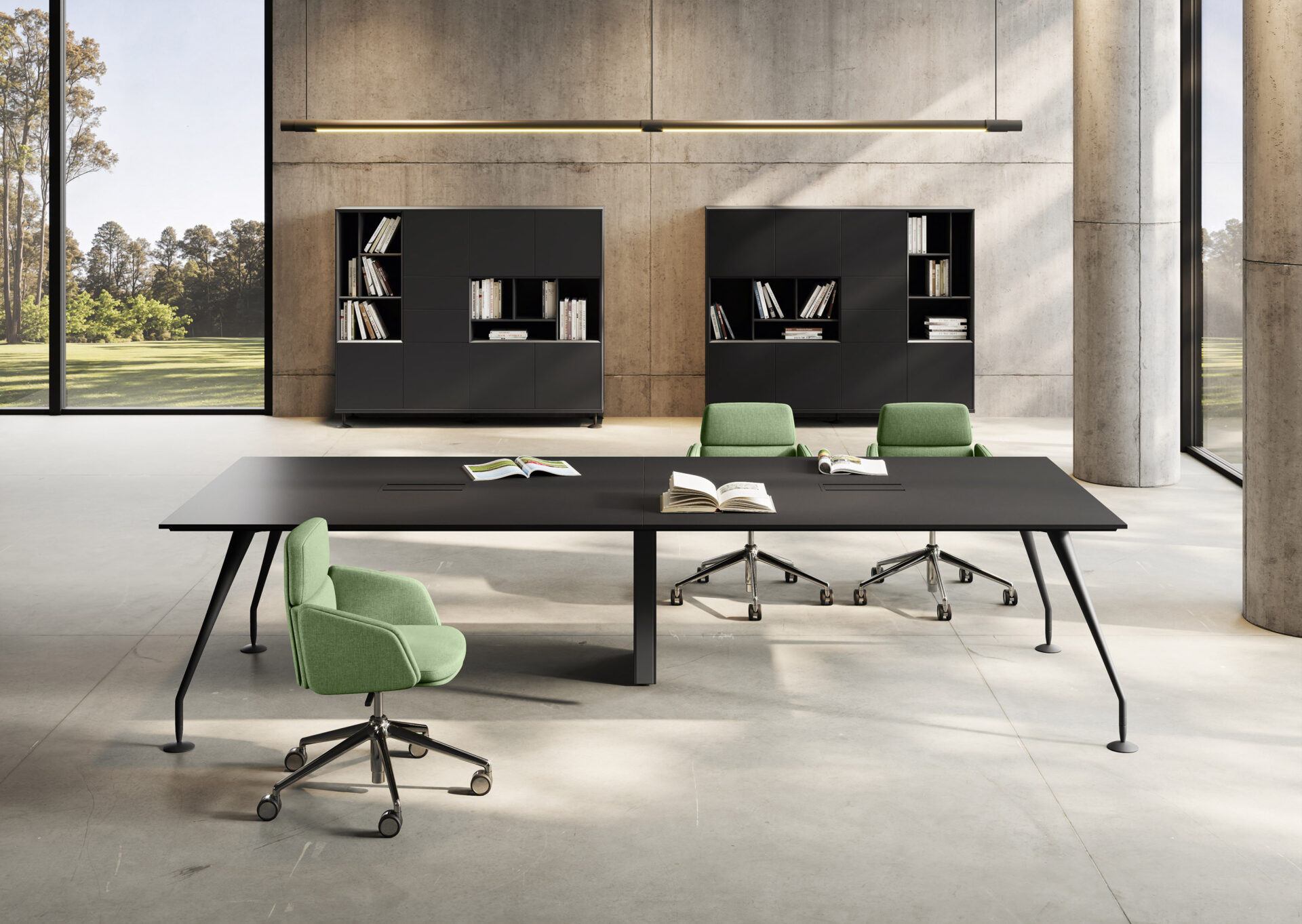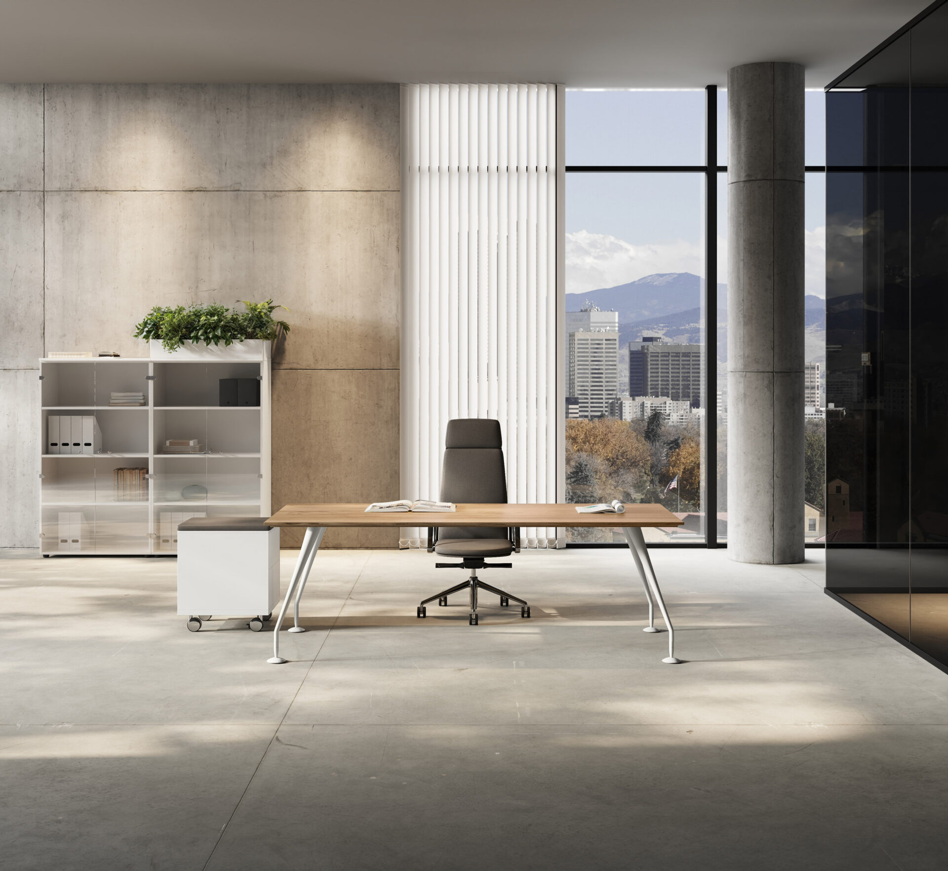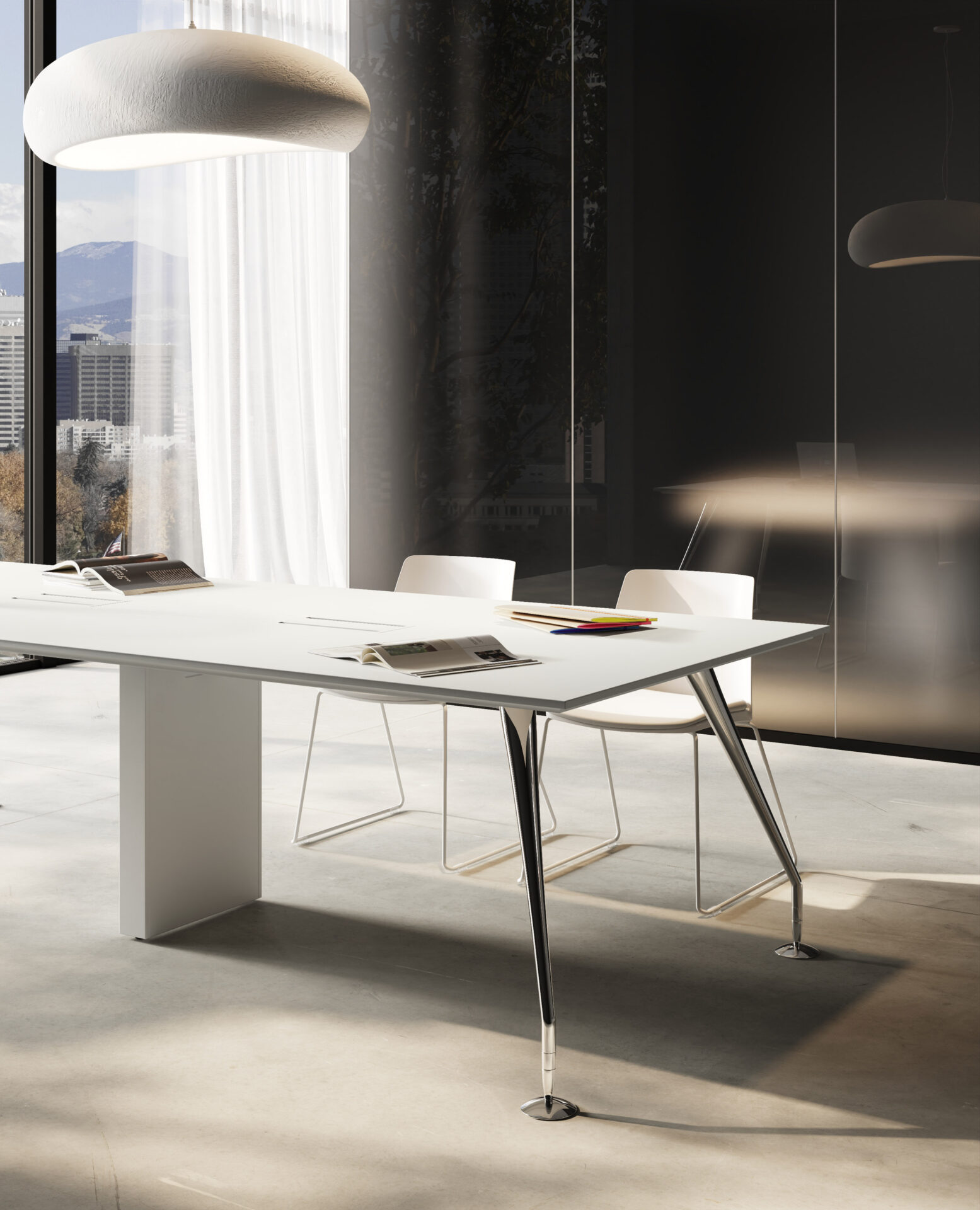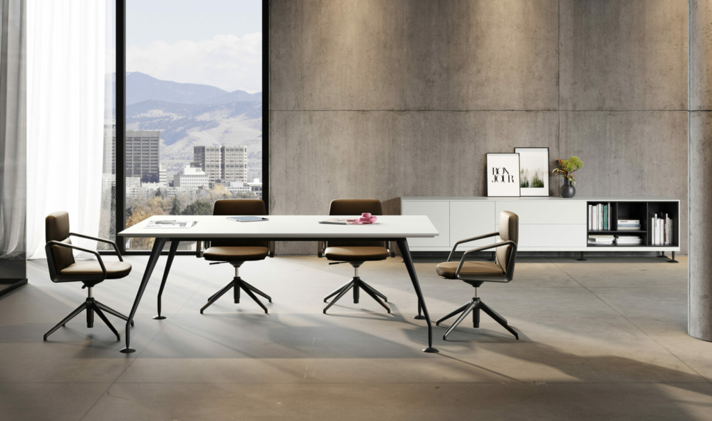 Mūsdienīga vadības klases galdu sistēma, kas apvieno elegantu dizainu, funkcionalitāti un modulāru pielāgojamību. Kolekcija radīta reprezentablām biroja telpām, kur svarīga ir gan estētika, gan pārdomāta darba organizācija.